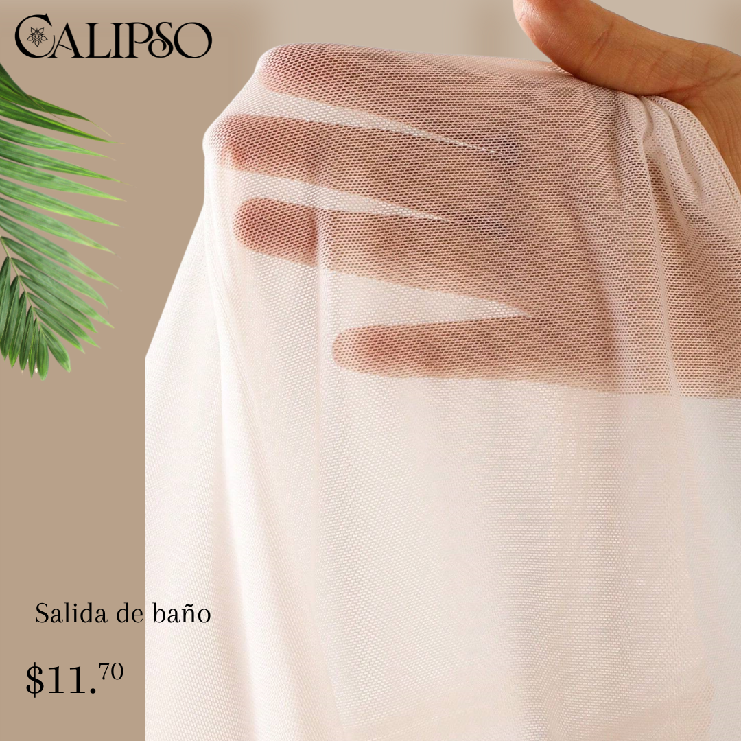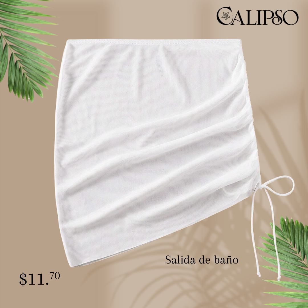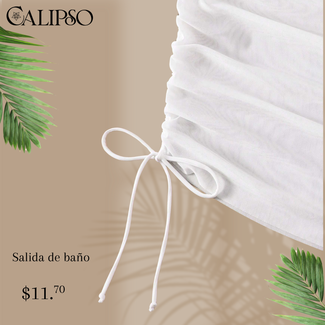 Delicada y elegante salida de baño en un solido color blanco, acompañado con un decorado de amarre en su costado.